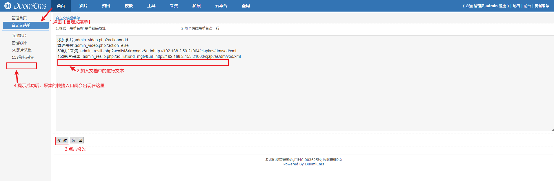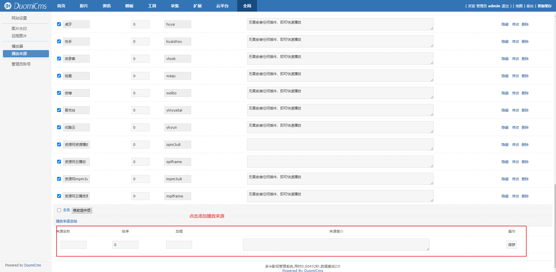 1,在下图红色框区域填写内容:资源网,admin_reslib.php?ac=list&rid=mgtv&url=