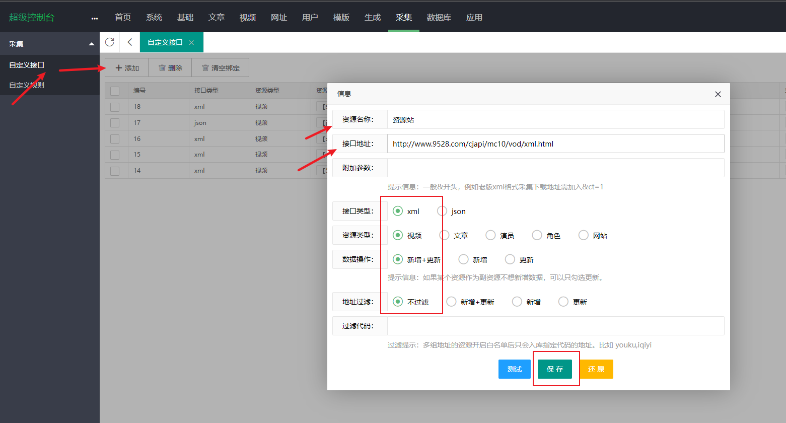 接口类型:xml